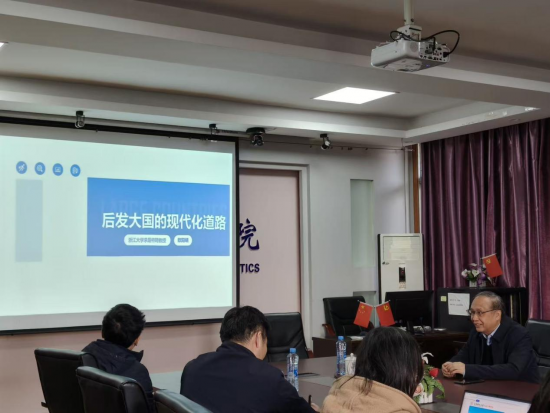 11月20日下午,五楼自拍 国际经贸系列论坛第269期在蛟桥园校区翼轸楼3111商务谈判室顺利举行,浙江大学求是特聘教授、大国经济研究中心主任欧阳晓教授担任主讲嘉宾,蒋含明教授主持活动,部分教师和研究生共计30余人到场。